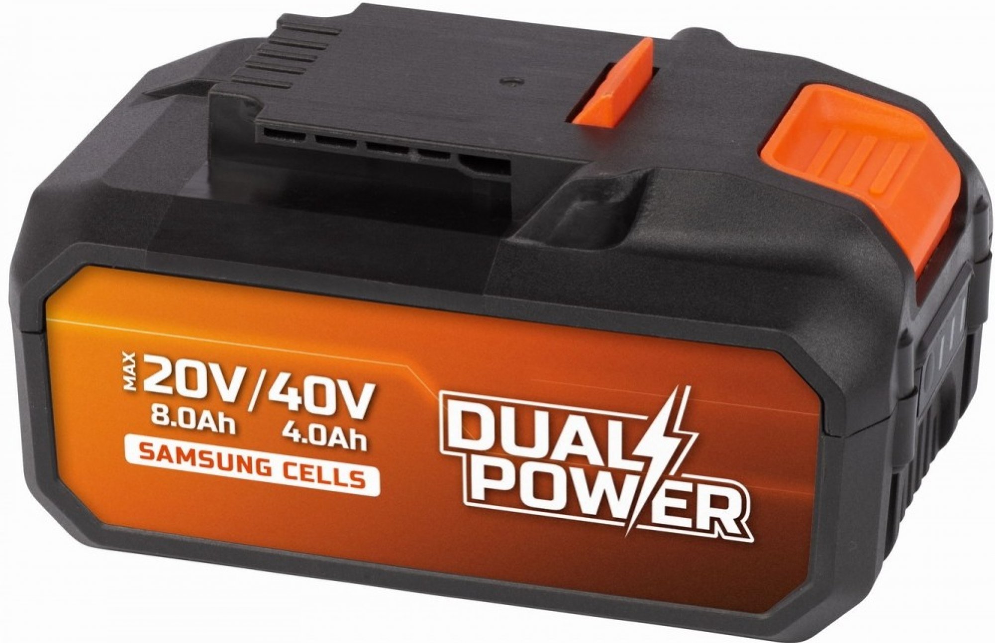 OBJEVTE DUAL POWER. Zcela nový způsob dodávání energie do akumulátorového nářadí. DUAL POWER je novou generací platformy umožňující užití dvou typů baterií. Skládá se z 20V a 40V baterie, které se kombinují s řadou akumulátorového nářadí. Koncept je jednoduchý, ale silný. 20V akumulátor se hodí pro 20V DUAL stroje, akumulátor 40V je určen pro 40V DUAL stroje. NYNÍ SE ALE DOSTÁVÁME KE SKUTEČNÉ INOVATIVNÍ ZMĚNĚ: Můžete totiž také připojit 40V baterii na 20V DUAL stroje. Výrazně tím prodloužíte dobu provozu strojů DUAL POWER. Obě baterie LITHIUM-ION lze nabíjet stejnou nabíječkou 20/40V. Hned na počátku představuje DUAL POWER širokou nabídku jak AKU nářadí, tak AKU zahradní techniky, které jsou určeny pro platformu pracující s oběma typy baterií.