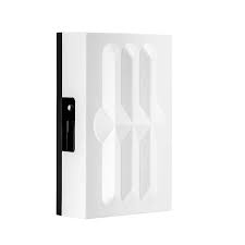 - Bílý elektronický domovní gong TEBAS ELECTRONICO k připojení na různé druhy napájení.