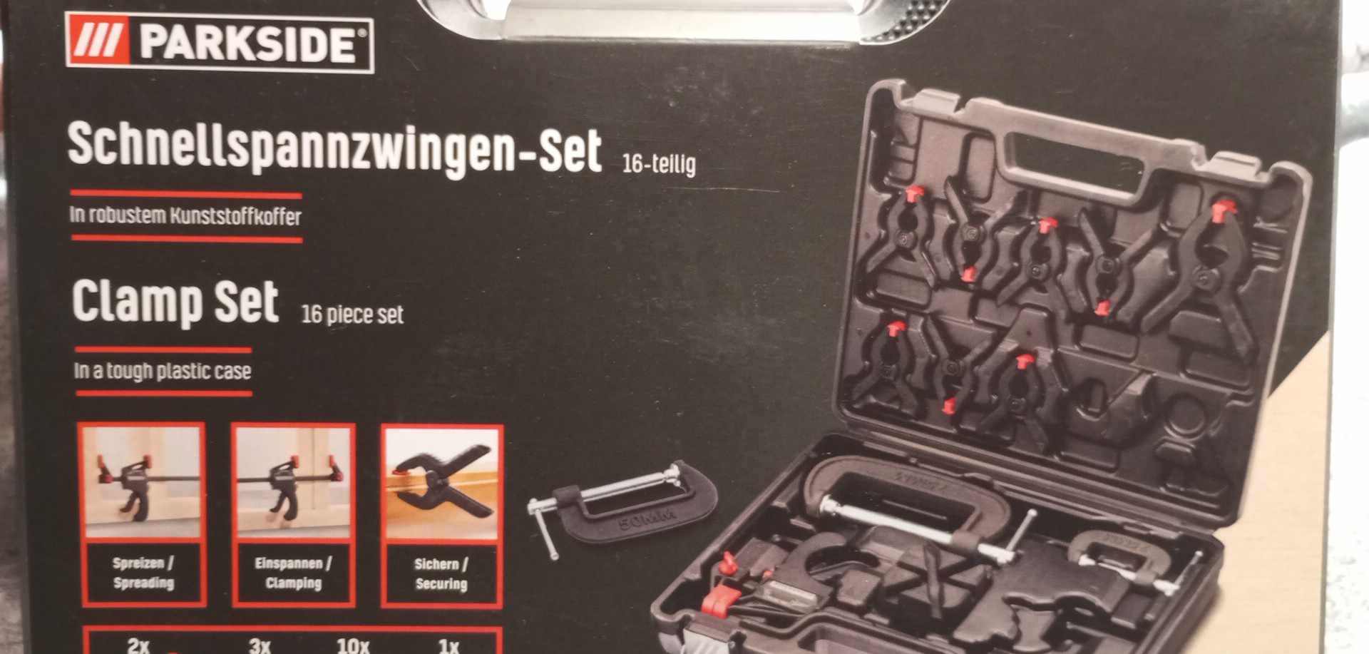 Sada rychloupínacích svěrek, 16dílná PARKSIDE + kufrSkladem339 Kč/ ks280 Kč bez DPH